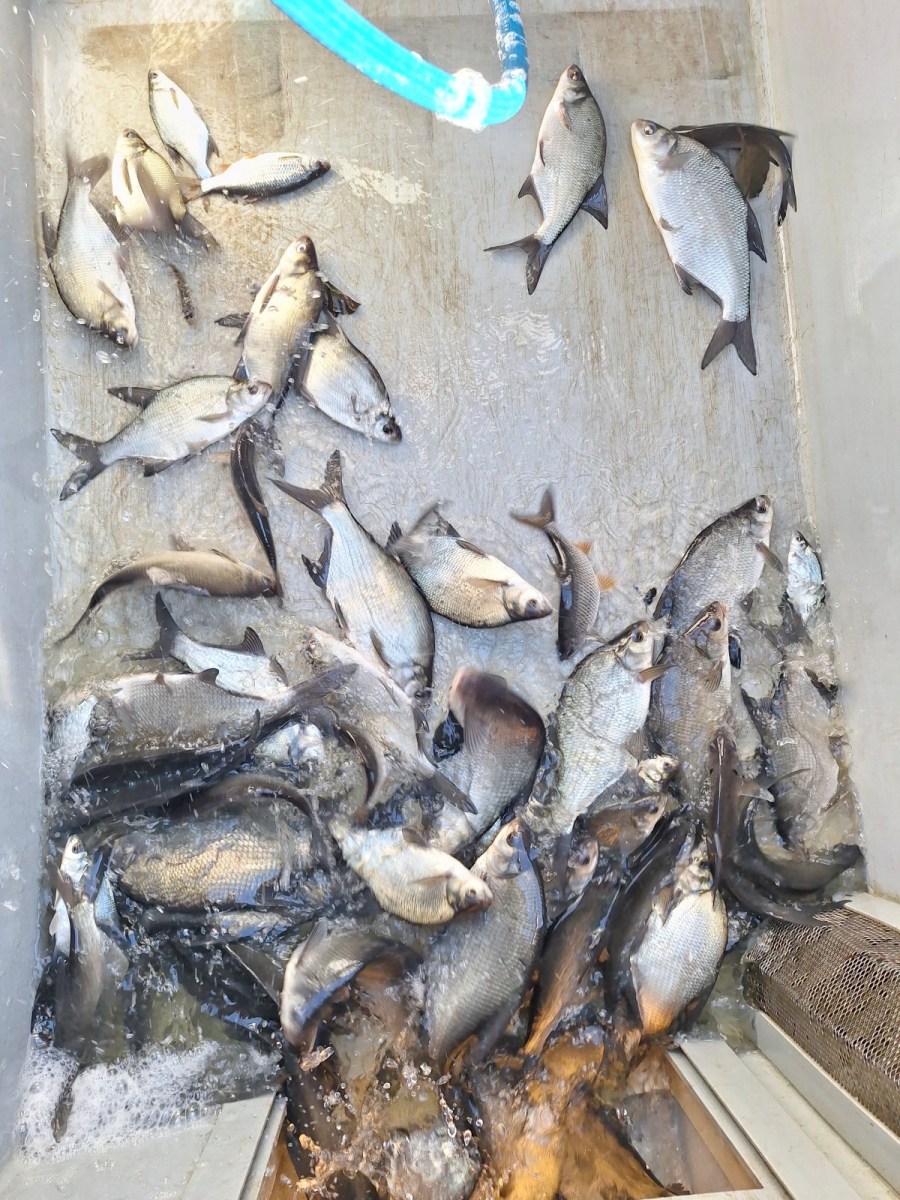 Besetzt wurden Schleien, Brachsen, Karpfen und einsömmrige Zander. Bei den einsömmrigen Zandern haben wir einen sorgfältigen Temperaturausgleich des Wassers gemacht und ein feines Netz verwendet. Es gab eigentlich fast keine Ausfälle. Laut Fischzüchter gab es heuer genug Plankton in den Teichen und die Zander konnten gut abwachsen. Die Fische kamen wie in den letzten Jahren alle aus dem Waldviertel. Sie wurden frisch abgefischt und sofort zu uns gebracht, daher gab es keine Ausfälle.