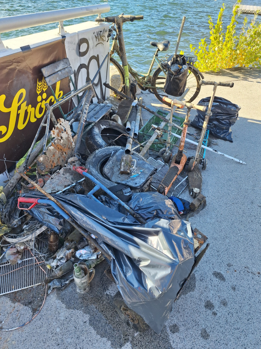 Am Samstag, 18.10.2025 wurde gemeinsam mit dem Verein Reefvillage eine Reinigungsaktion bei der Reichsbrücke unter Wasser gestartet. Dabei wurde die Neue Donau mit TaucherInnen von Müll und Unrat befreit. Obwohl heuer leider einige TaucherInnen krankheitsbedingt absagen mussten, sind trotzdem viele Gegenstände (Scooter, Roller, Fahrräder, Autoreifen, Metallteile etc. ) aus dem Wasser geholt worden. Eine mehr als gelungene Veranstaltung für den Natur- und Gewässerschutz.